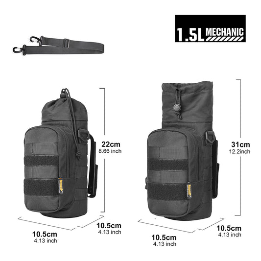 Rhinowalk 1.5L Tactical MOLLE Water Bottle Bag - Insulated Multifunctional Pouch with Shoulder Strap for Cycling, Motorcycling & Outdoor