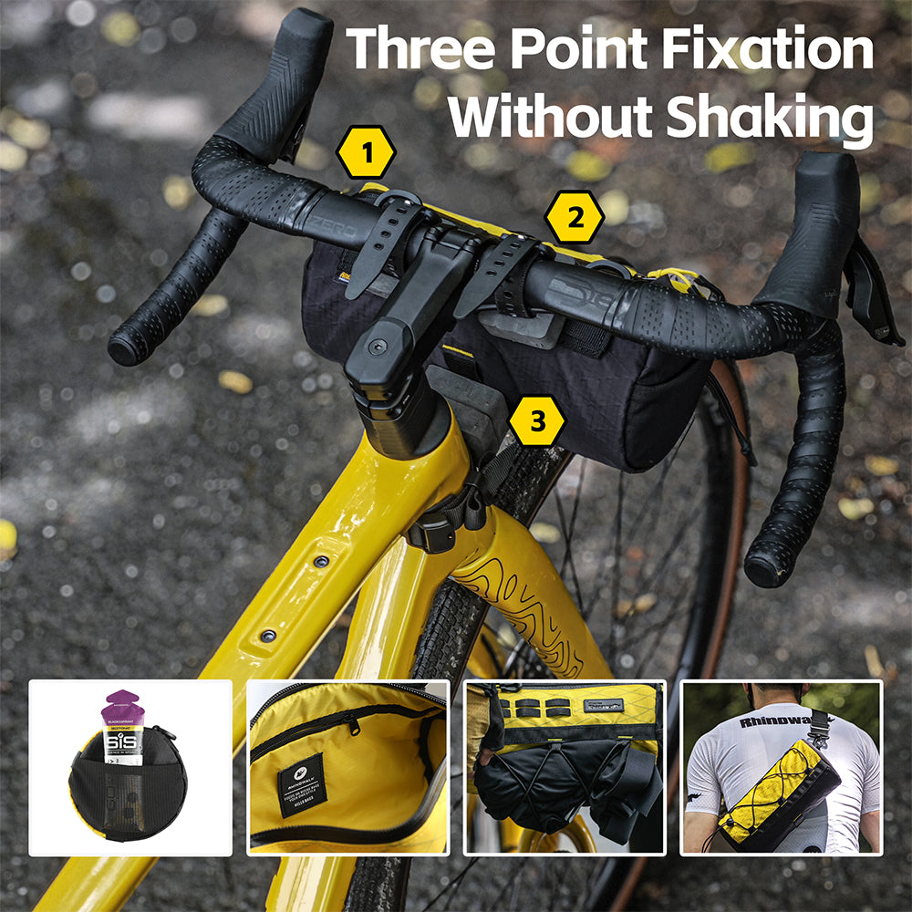 Keywords: bike handlebar bag, Rhinowalk, 2.8L handlebar bag, MOLLE system bike bag, YKK zipper bike bag, three-point fixation bike bag, road bike handlebar bag, cycling accessories, bike storage solution