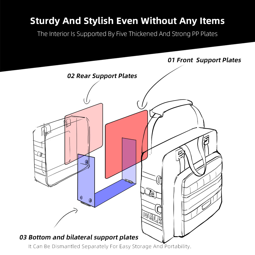 It can be fitted with a small bag containing frequently accessed pouches that are free to be mounted on it.