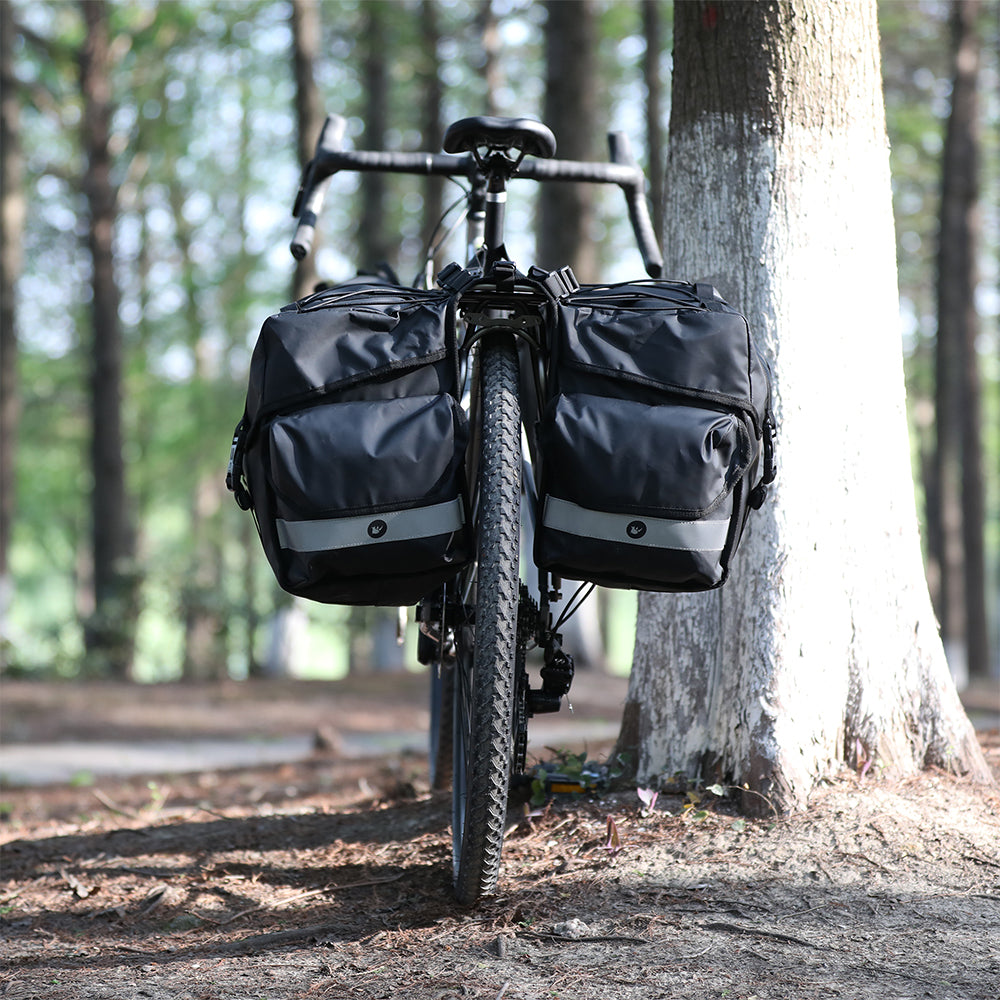 Rhinowalk Double Pannier Bag — a rugged, waterproof solution for secure gear storage on bicycle rear racks. Designed for reliability across all weather conditions and terrains, these panniers blend capacity, stability, and smart features to transform your rides.