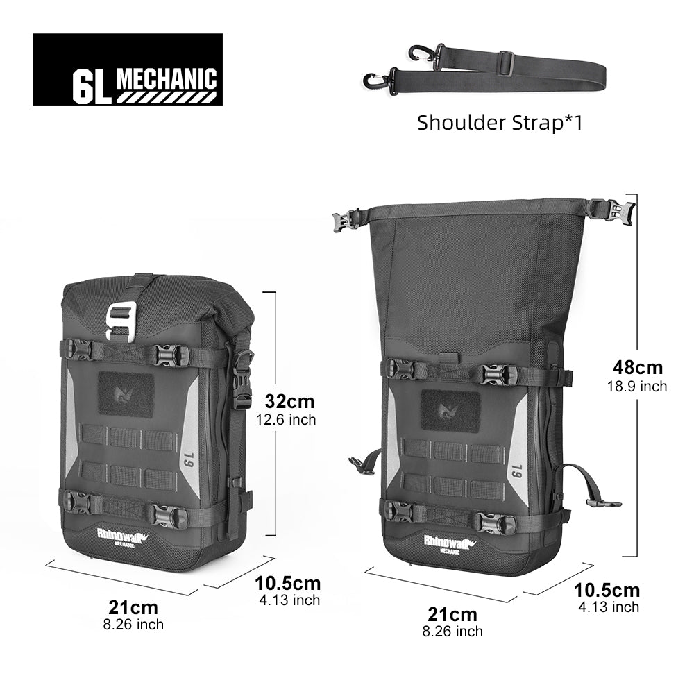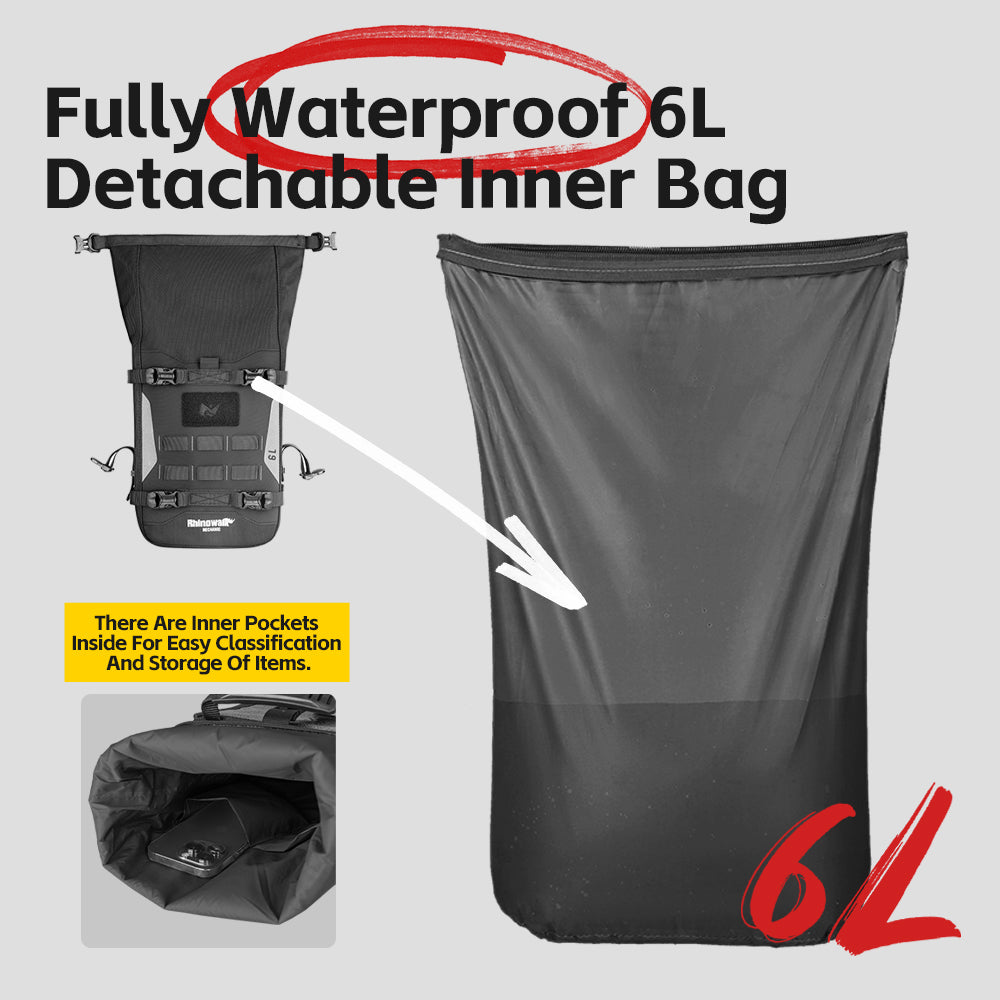 - Fully Waterproof 6L Detachable Inner Bag: Keep essentials dry in rain or mud with the sealed inner dry bag—perfect for electronics, tools, or clothing.