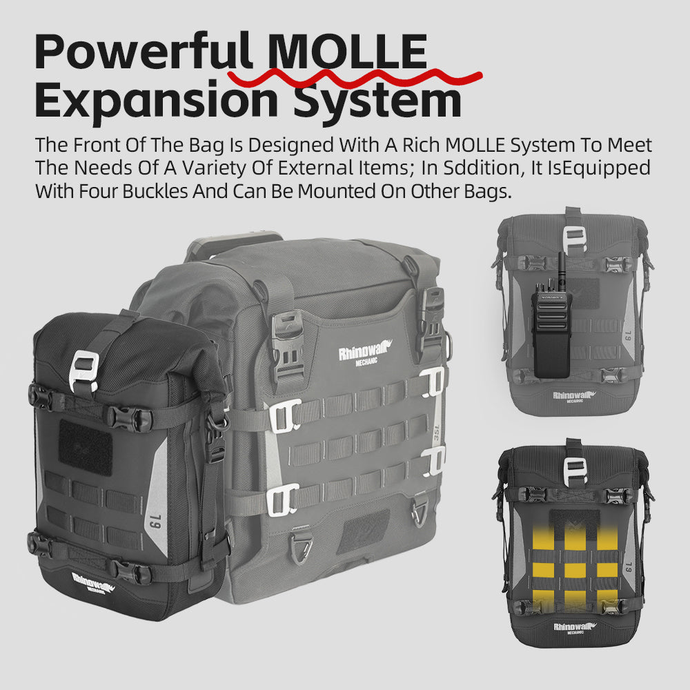 - Powerful MOLLE Expansion System: Attach extra gear, pouches, or accessories to customize your storage for any ride.