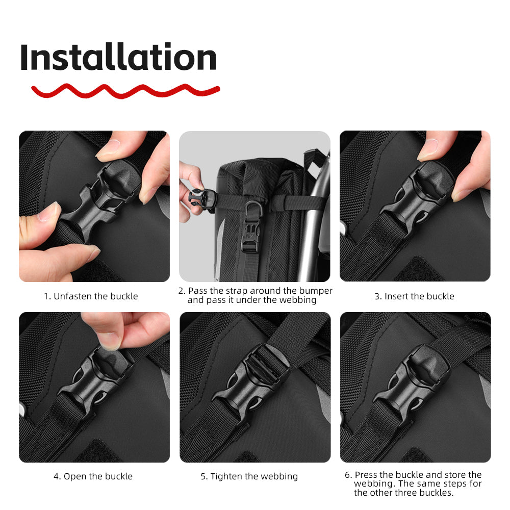 - Easy Installation: Simple buckle straps let you fasten/unfasten the bag to your bike’s bumper in minutes—no tools required.