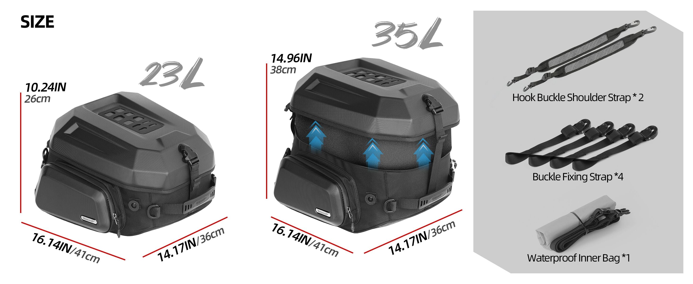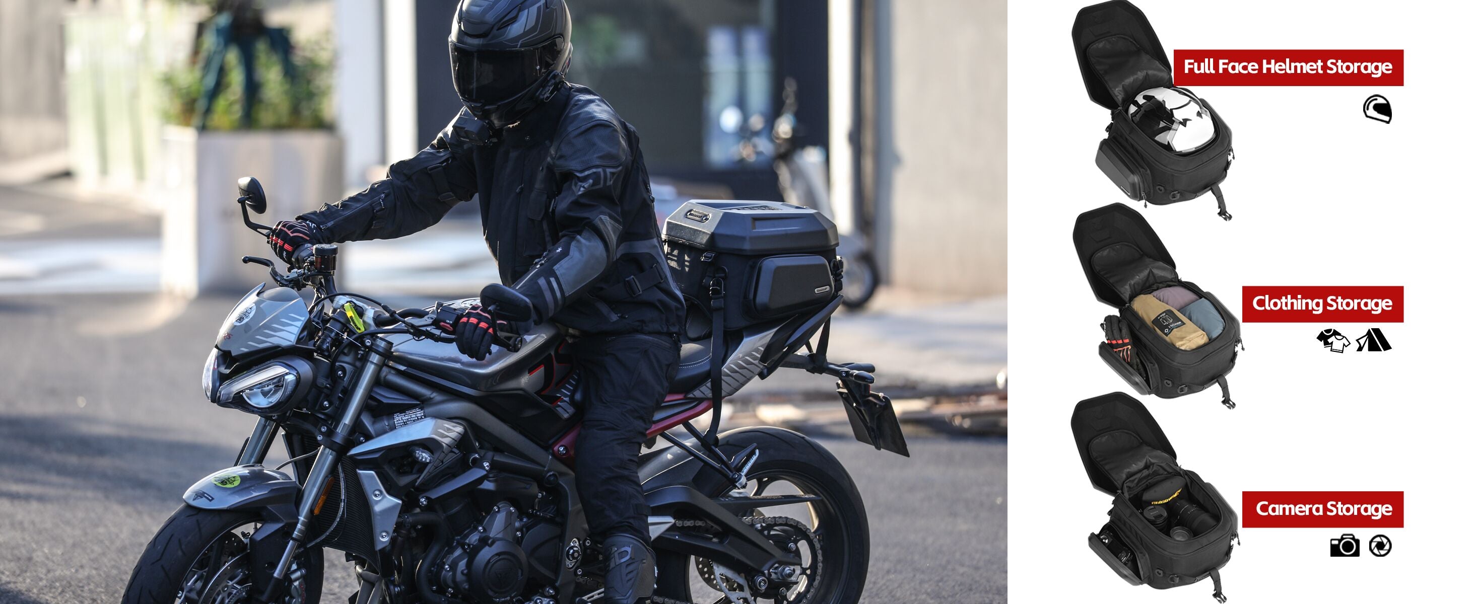 Available in 23L and 35L capacities, it swallows full - face helmets, clothing, cameras, and more. The internal mesh compartments keep phones, headphones, and small items tidy.