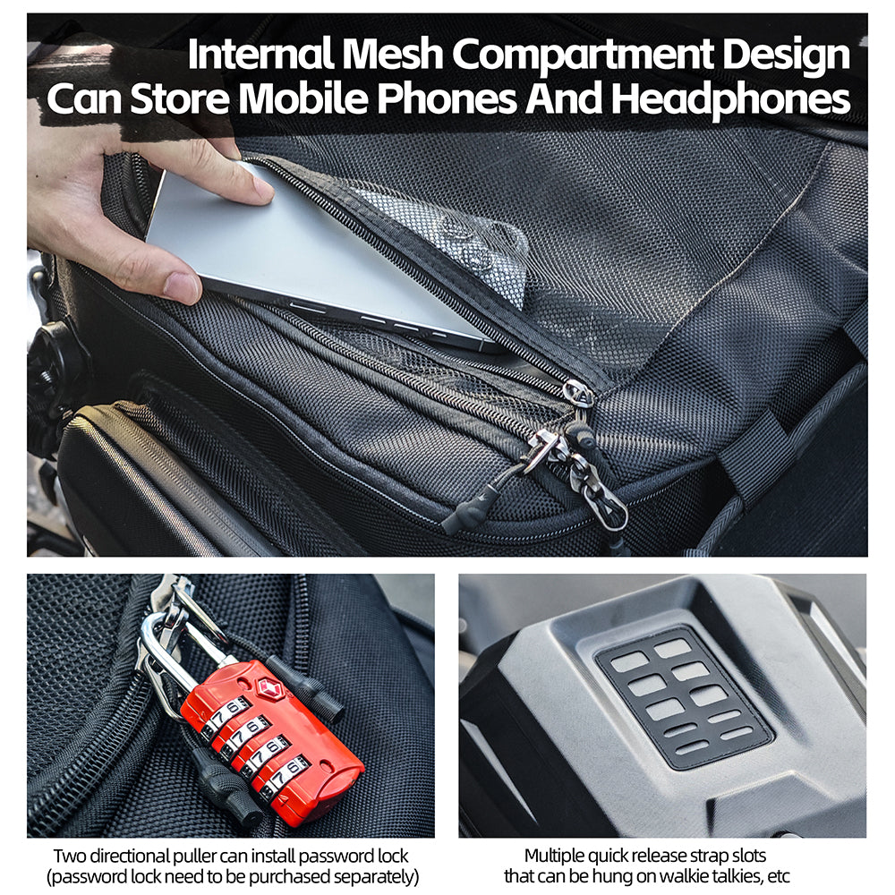 Elevate your motorcycle journeys with our versatile tail bag, engineered to meet all your riding needs.