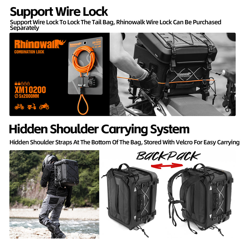 - 2-in-1 Carry Options: Use as a motorcycle tail bag (with secure straps) or convert to a backpack (via adjustable shoulder straps) for post-ride exploration.