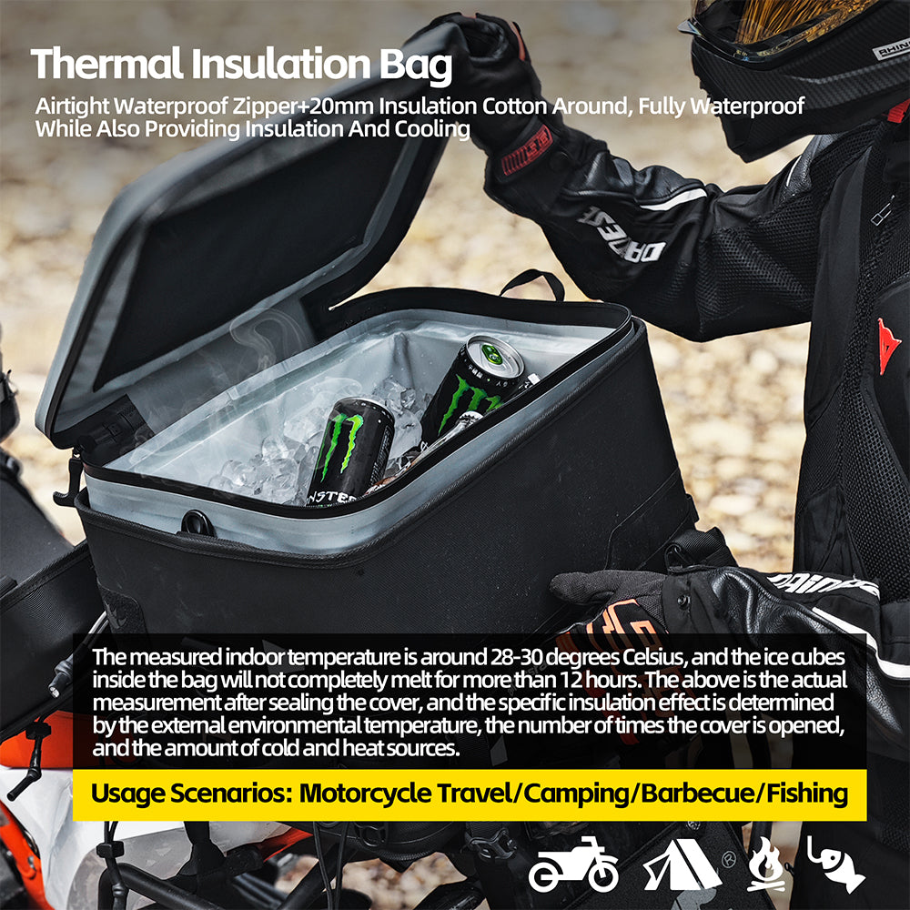 - Cooler Version: Comes with a 22L thermal insulation inner bag to keep food/drinks cold (or warm) during rides.