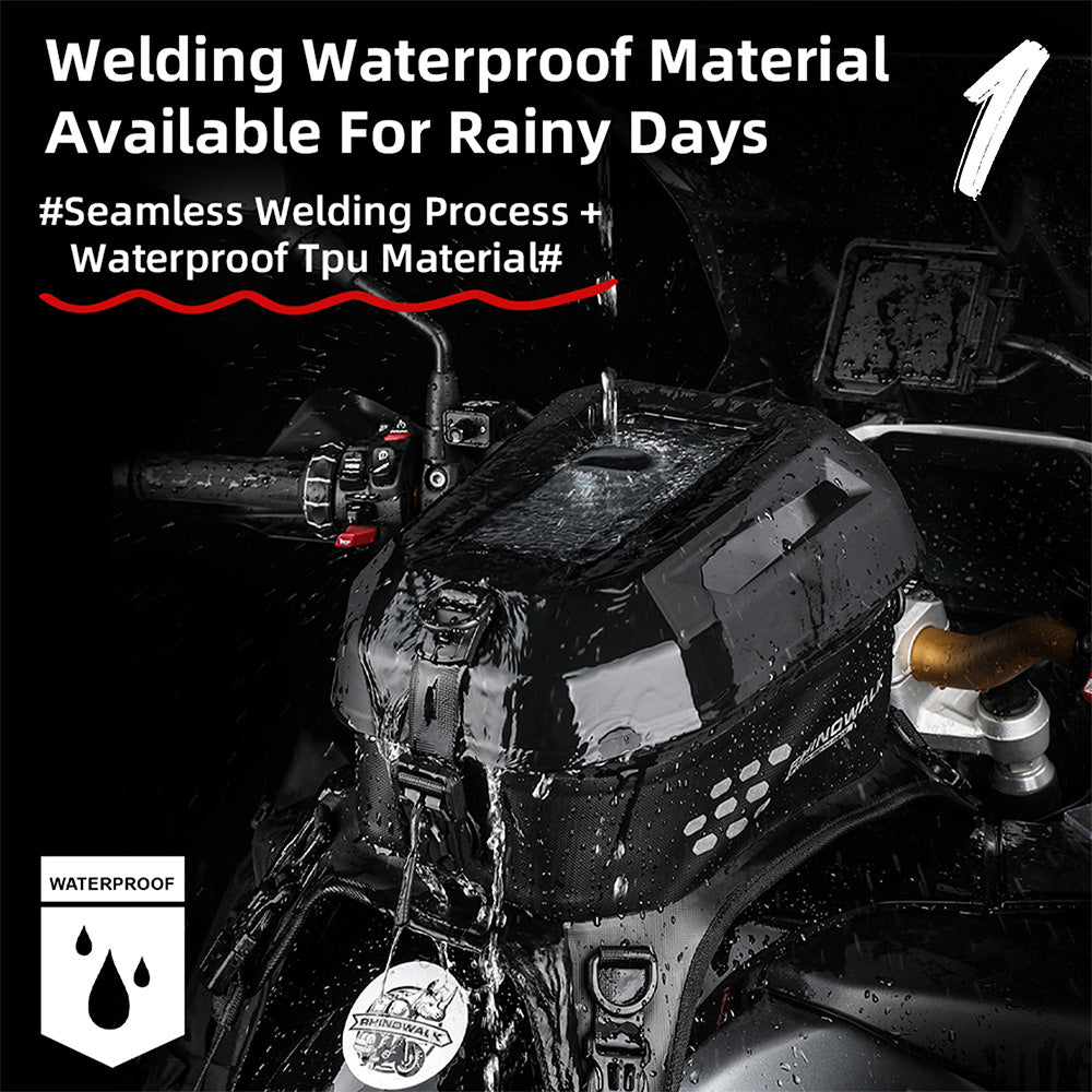 Rhinowalk Waterproof Motorcycle Tank Bag—a rugged, versatile storage solution designed for adventure-ready riders.