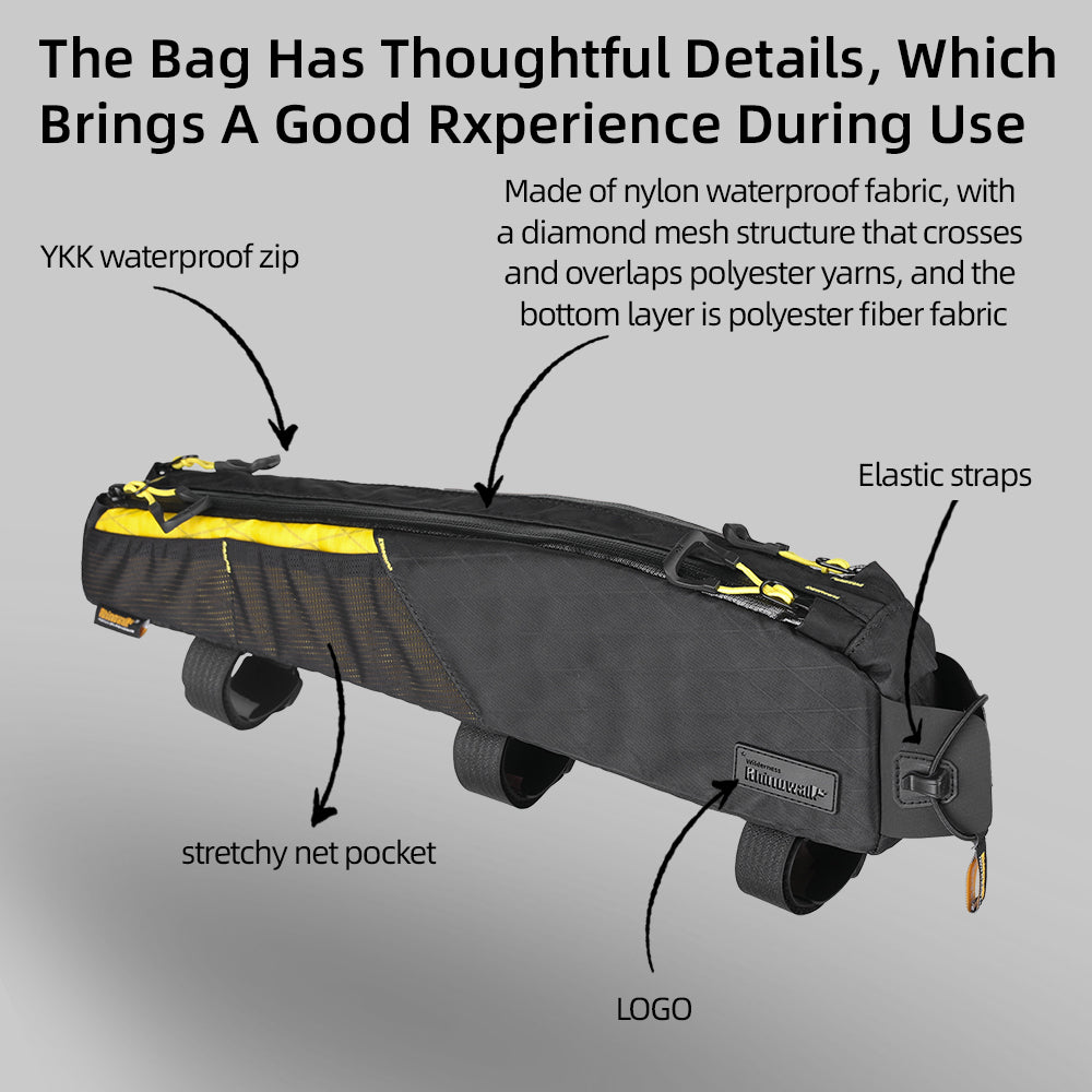 Rhinowalk Wilderness 2.1L Waterproof Bike Top Tube Bag - Adjustable Storage for Cycling